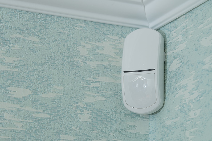 Motion sensors should watch the room—not the outdoors. If one faces a bright window, shifting light and temperature can trigger nuisance alerts. Many manufacturers recommend mounting motion sensors at about 7.5 feet high—often in a corner—and avoiding areas with aim points such as windows, heat sources, and air vents.